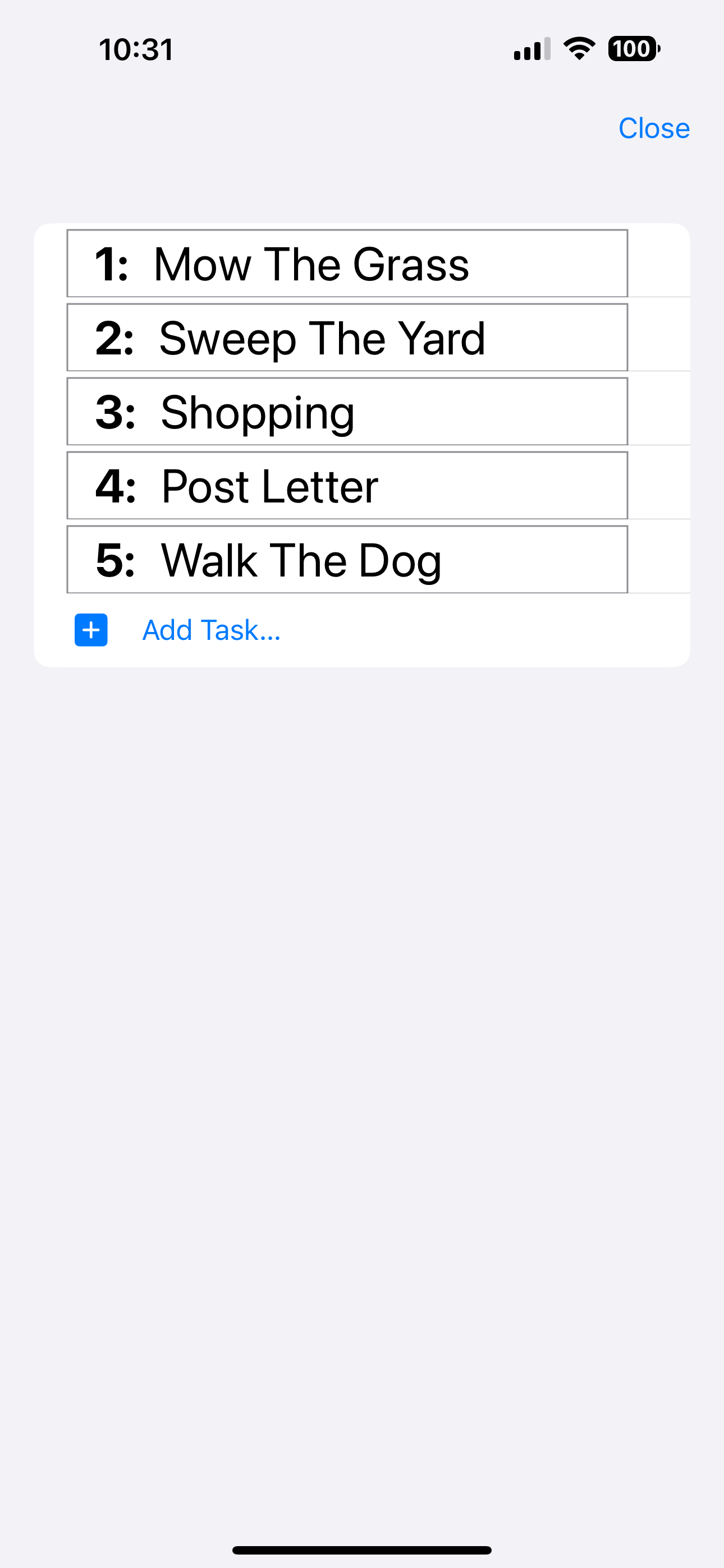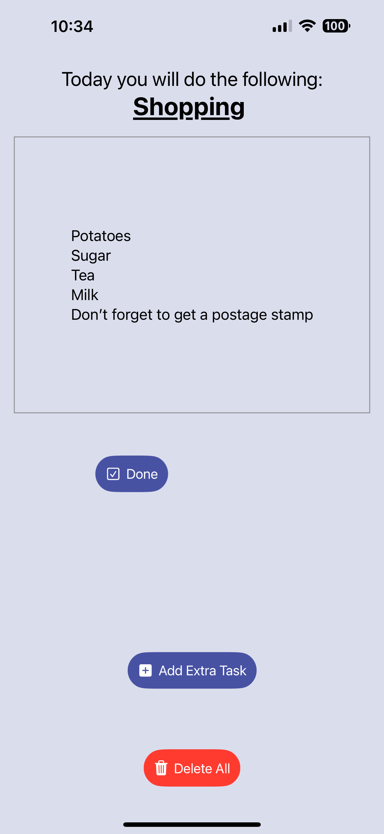 After you have entered and rearranged the tasks and closed the window, the list can't be edited again, except to add an extra task at the end. This stops you from changing your mind and losing focus.